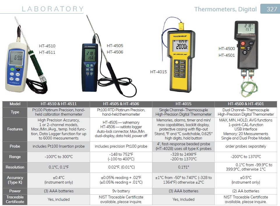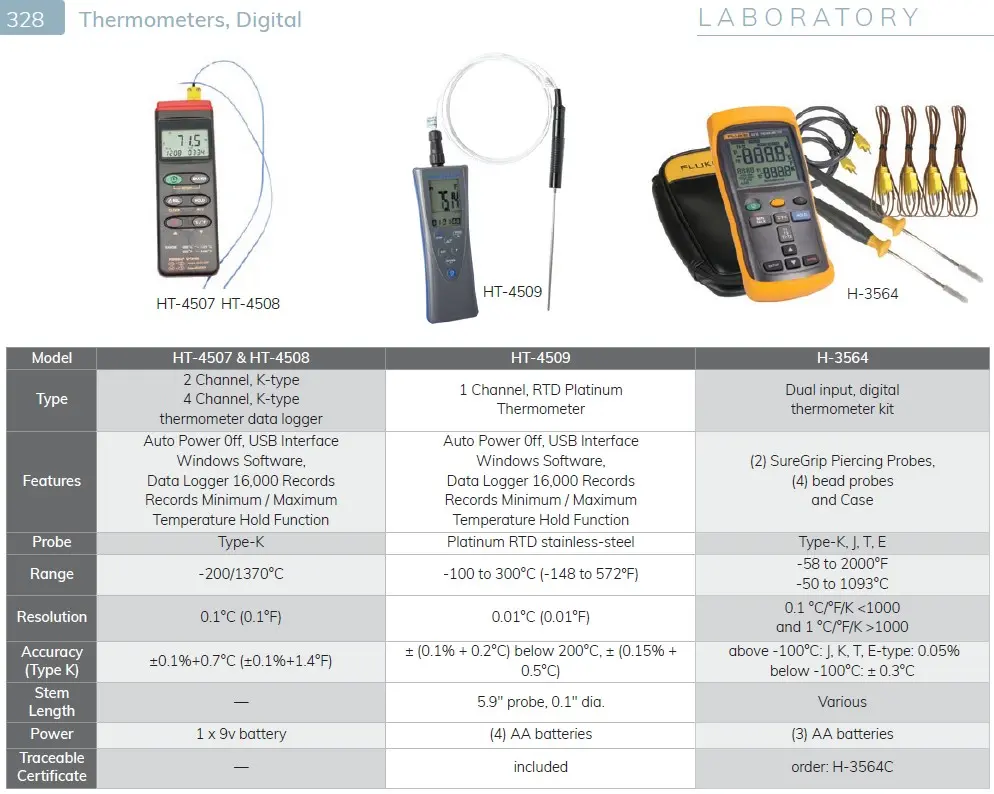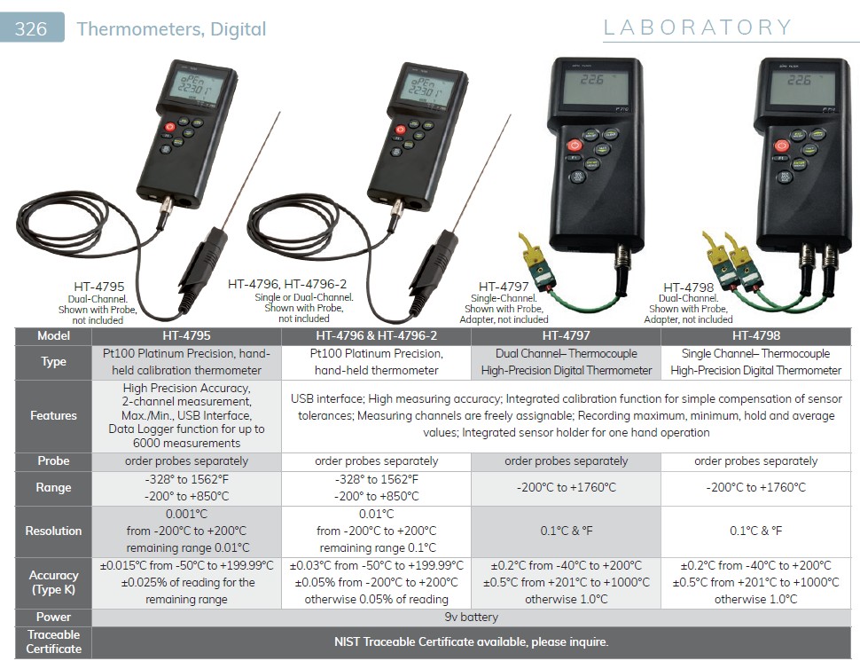 Thermometer, High-Precision HT-4795 Thermometer, High-Precision, 3 Pt. Cal. HT-4795C