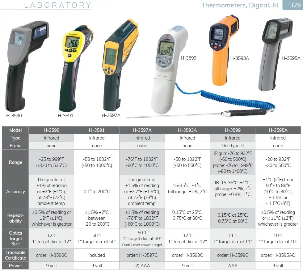 Thermometer, Wide-Range IR Gun H-3591 - Ship wt. 4lbs. (1.8kg)