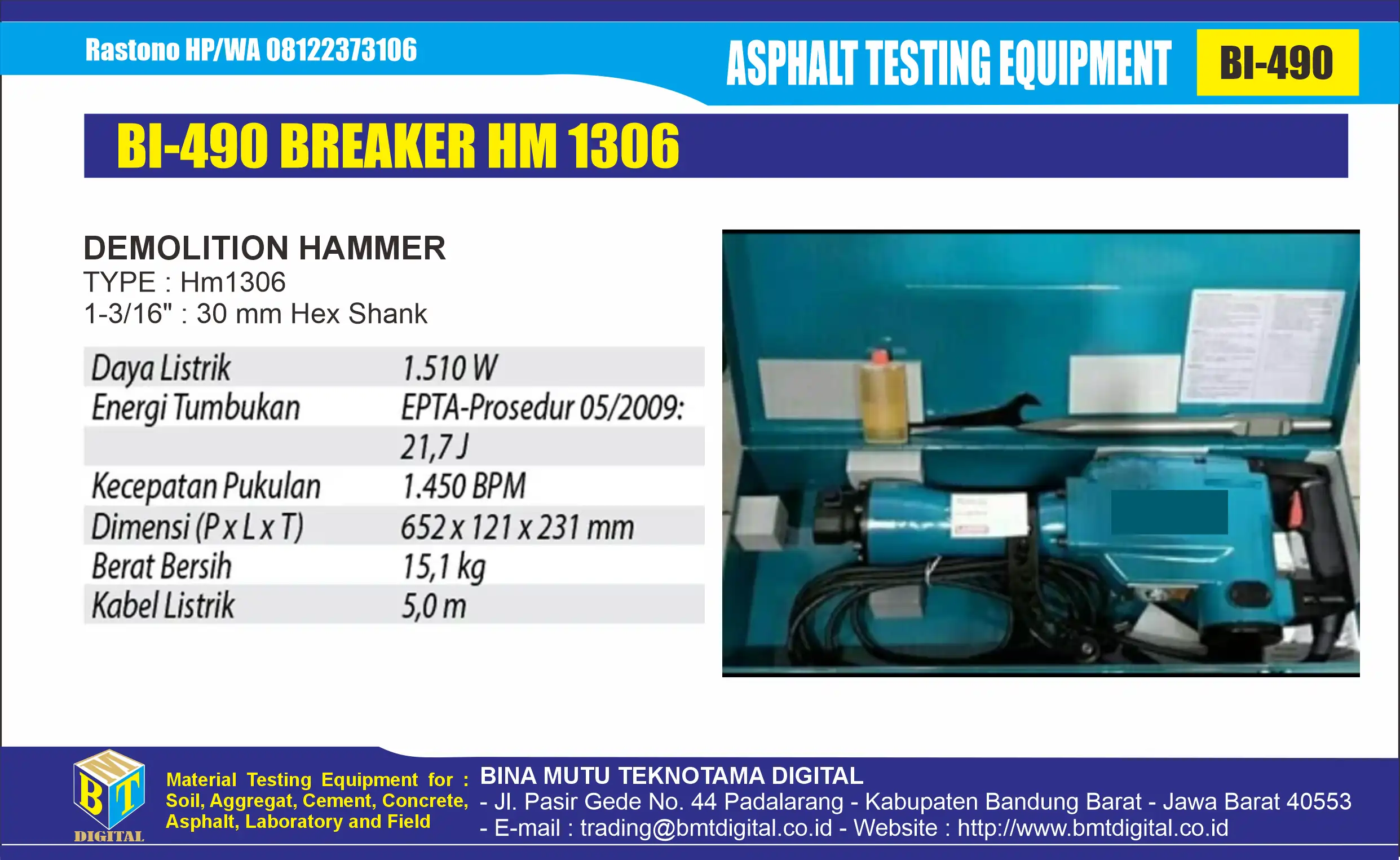 Breaker HM1306 adalah mesin bobok bertenaga tinggi yang mampu menghasilkan pukulan kuat dan stabil, menjadikannya pilihan tepat untuk pekerjaan berat di lapangan.