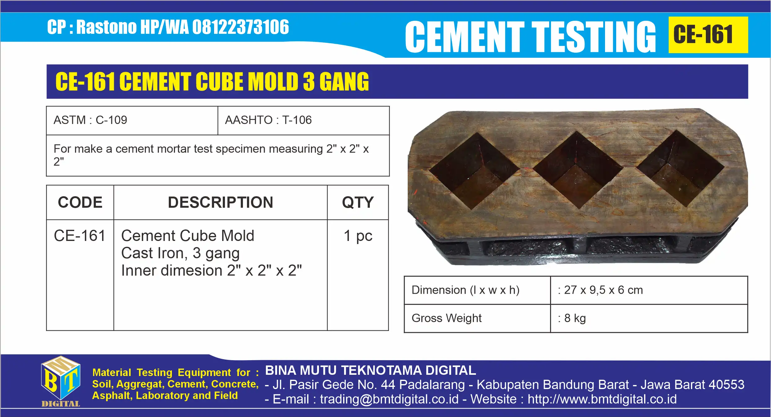 CE-161 CEMENT CUBE MOLD 3 GANG