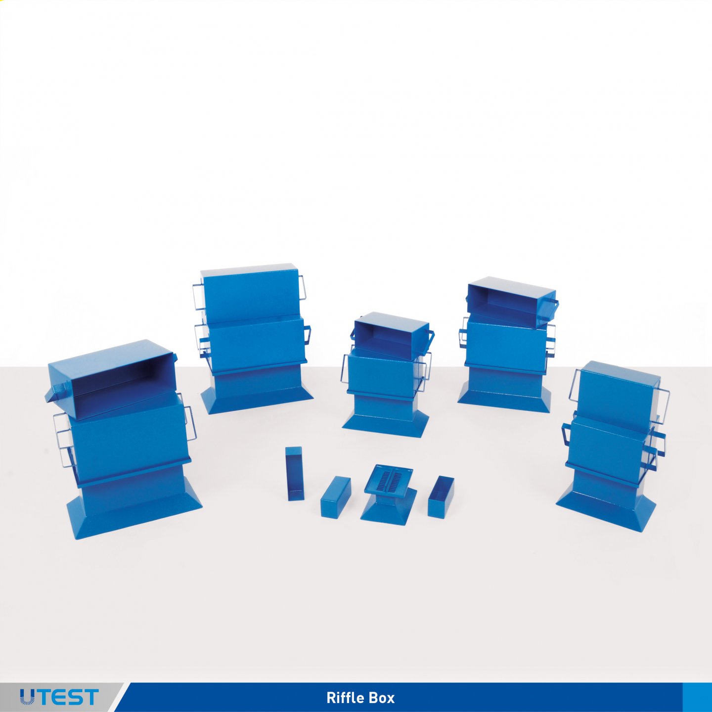 Riffle boxes are used for dividing aggregates into 2 equal homogenous quantity for testing. The Riffle Box is electrostatically painted and manufactured to meet the relevant International standard both in the slot width and number of slots.