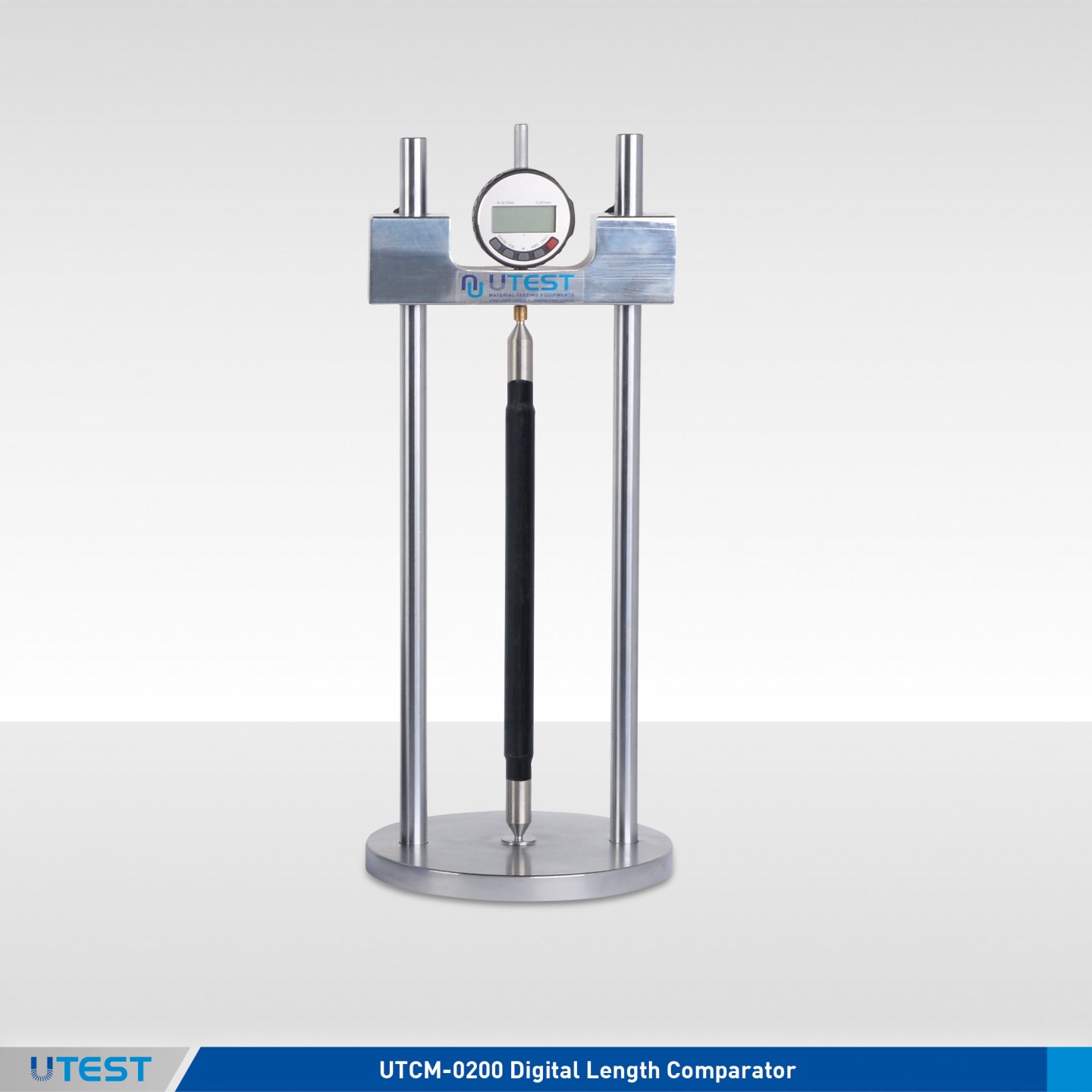 The sets consist of a length measuring frame with measuring device attached to it. The comparators comes with 3 different models, UTCM-0200 and UTC-1170 are with 0.001 mm x 12,7 mm digital dial gauge and UTCM-0210 is with special 0.0001 mm x 30 mm transducer and readout unit. Horizontal clearance of UTCM-0200 is 150mm and UTC-1170 is 220mm.