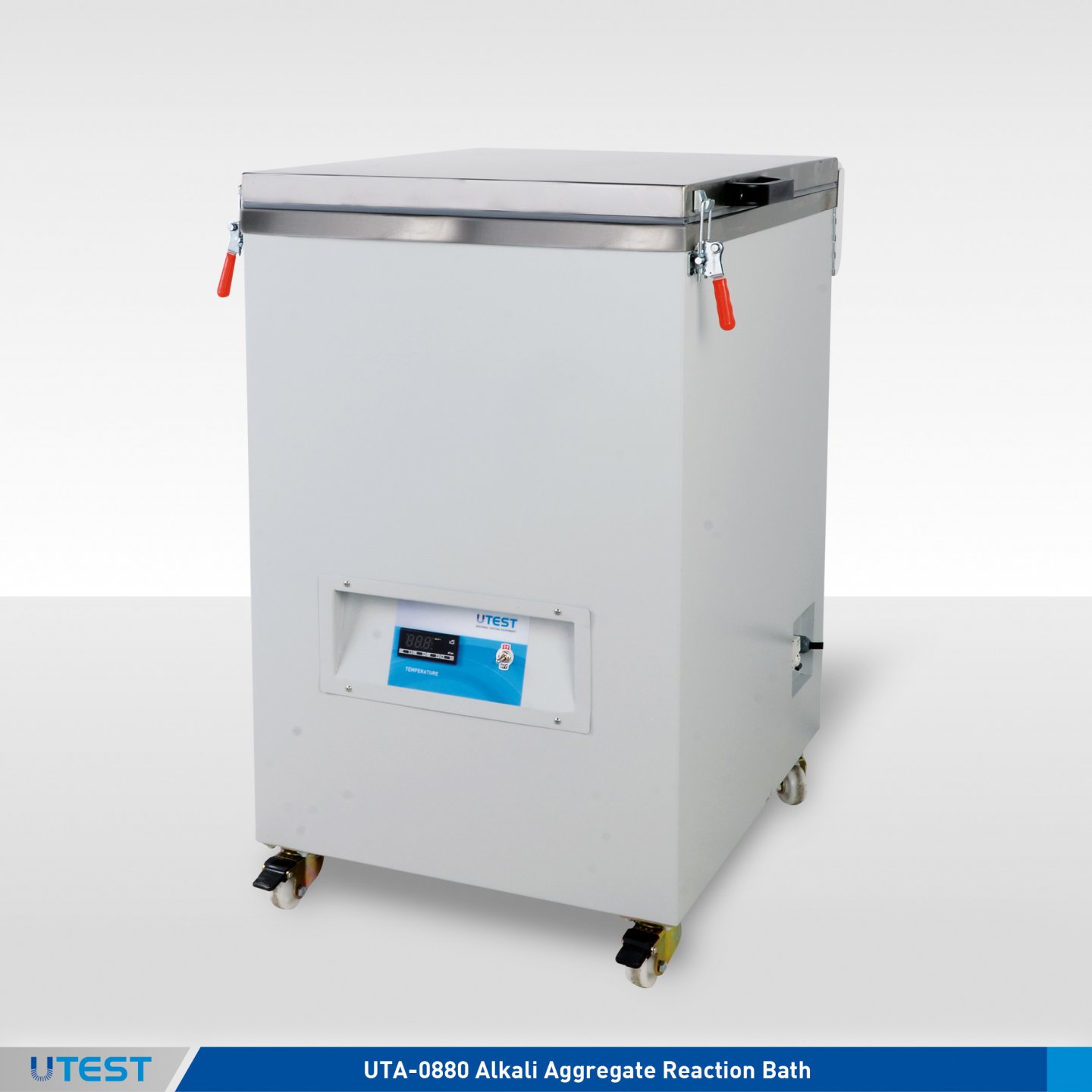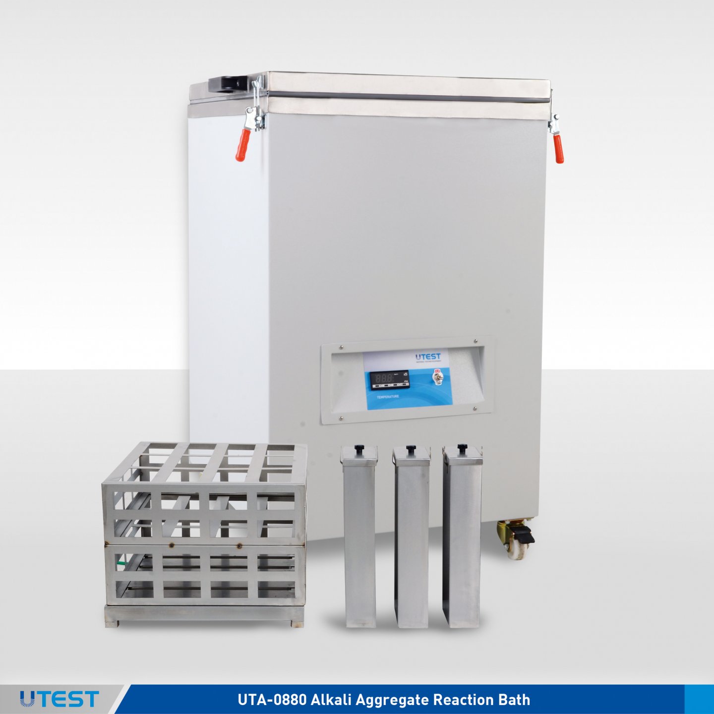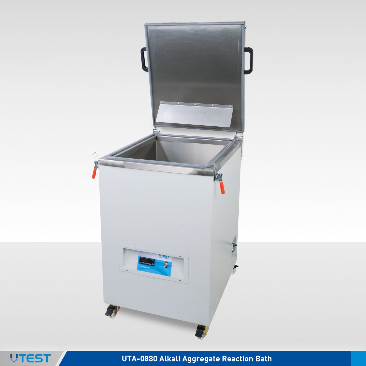 The Alkali Aggregate Reaction Bath is used to keep 25x25x285 mm samples in NaOH (Sodium Hydroxide) or in any other solution at a specified temperature. The temperature can be adjusted between ambient to 80°C by using the digital controller.