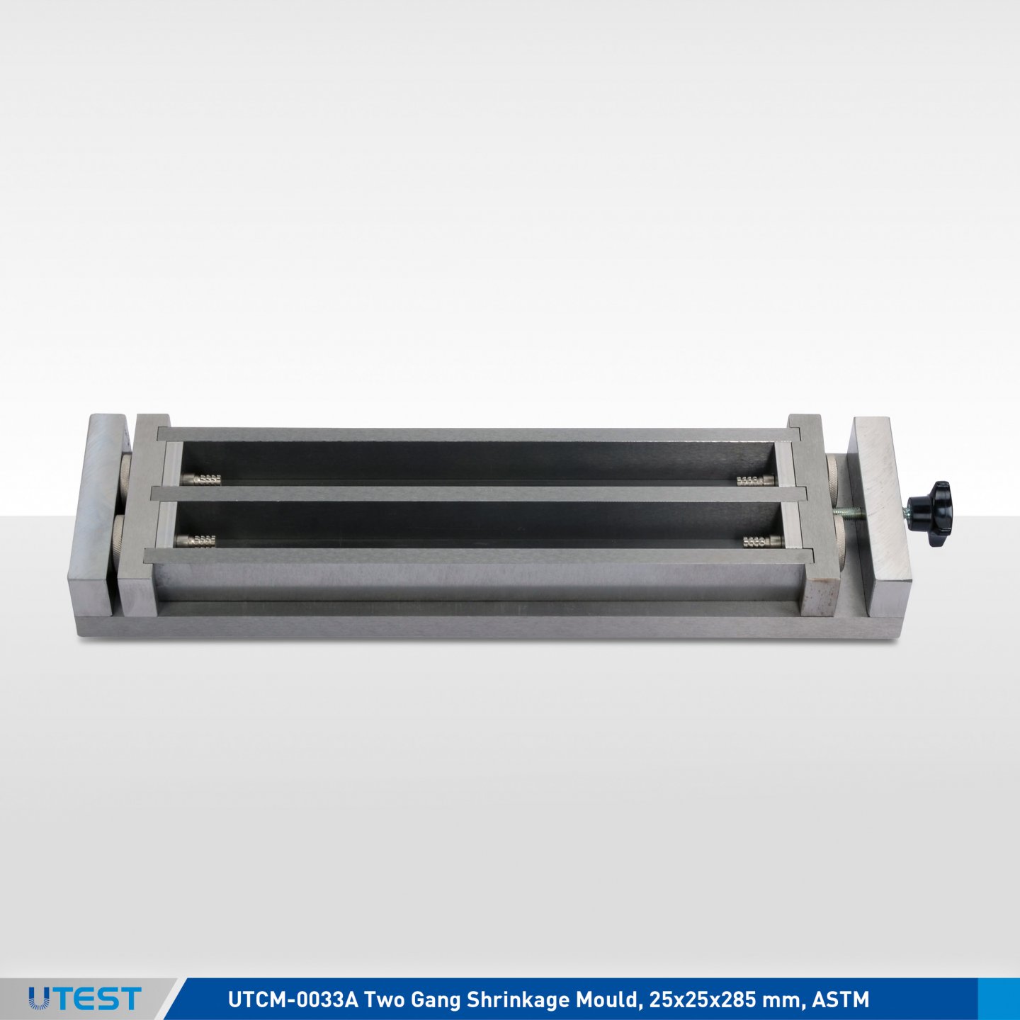 UTCM-0033A Two Gang Shrinkage mould and Length Comparators (UTCM-0200 or UTCM-0210) should be ordered separately.