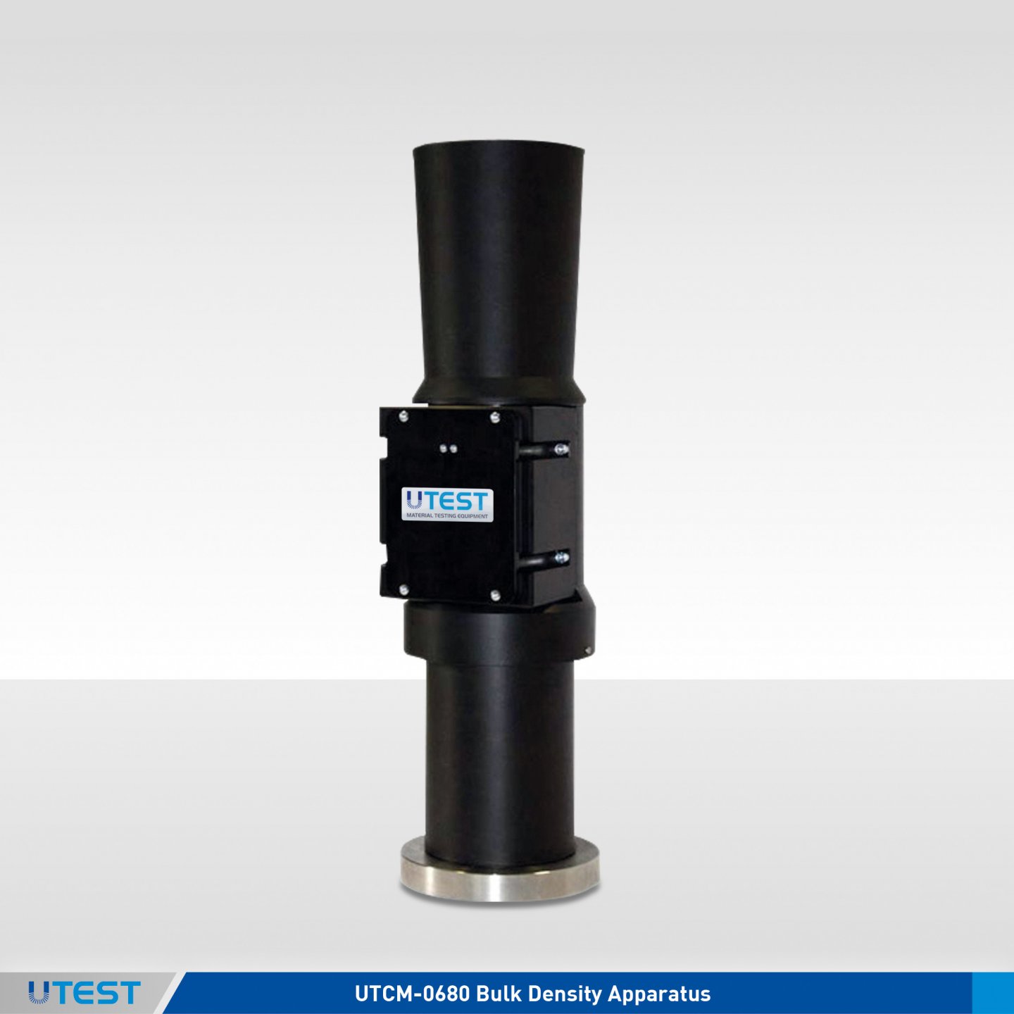 The UTCM-0680 Bulk Density Apparatus is designed to determine bulk density of lime by allowing a sample to fall from a standard height into a volumetric container.