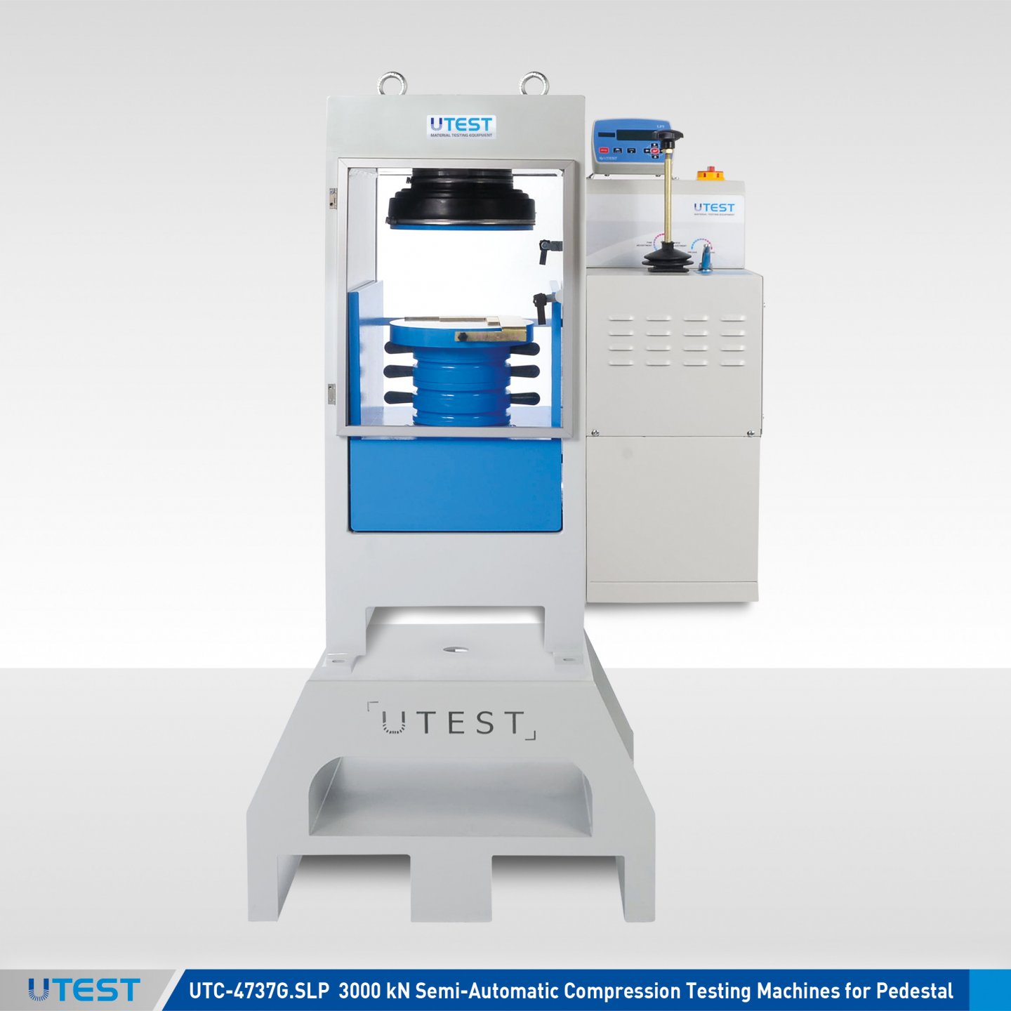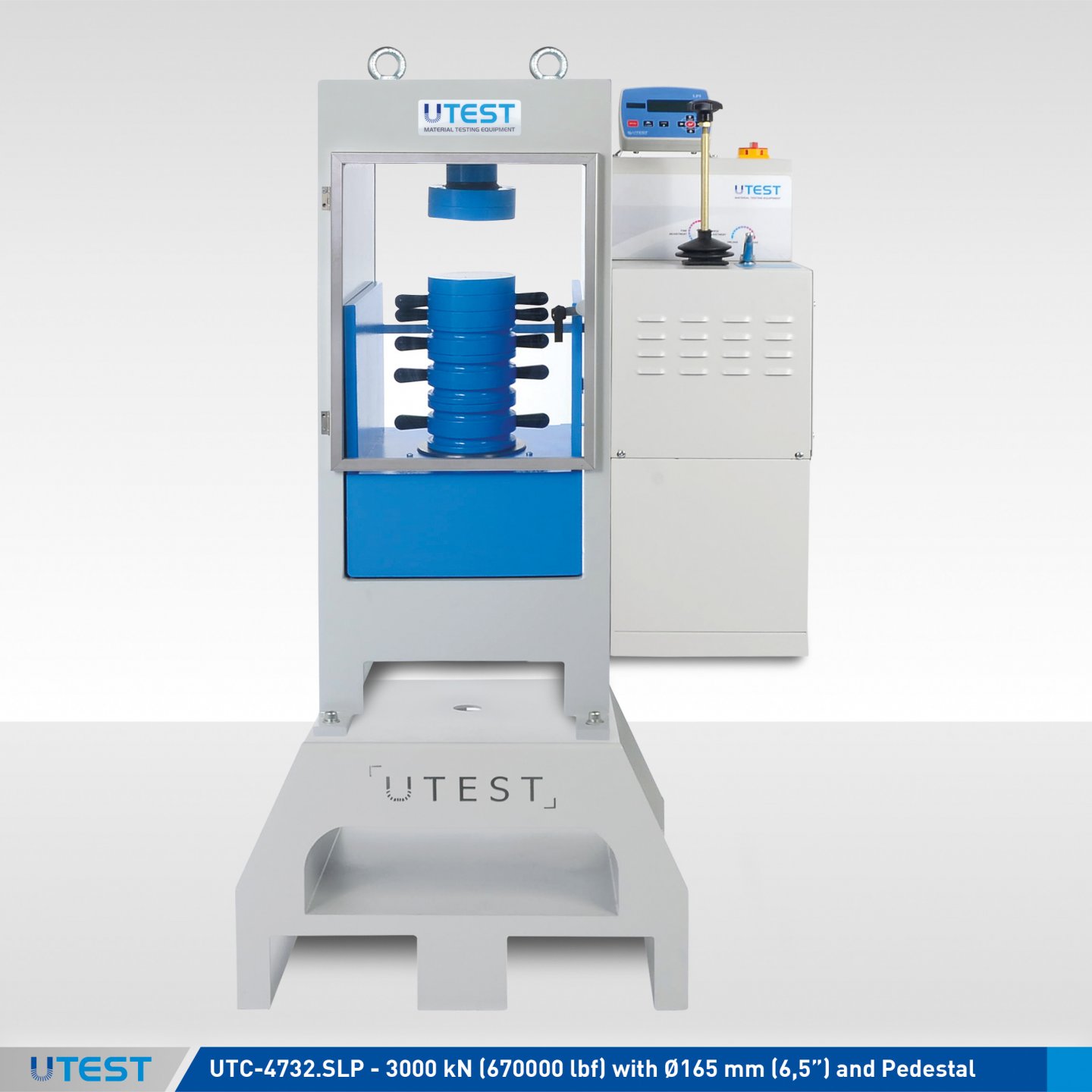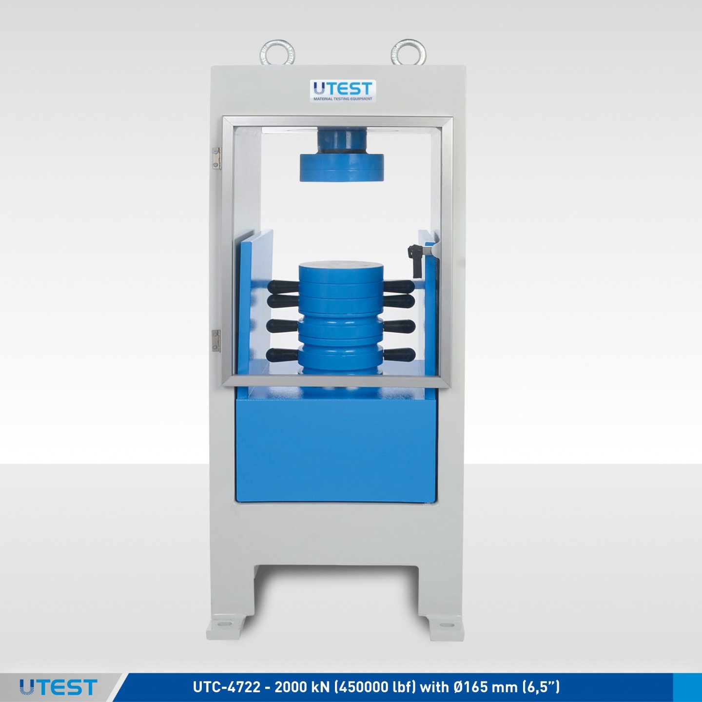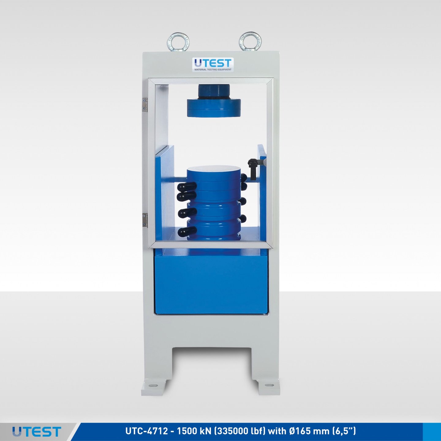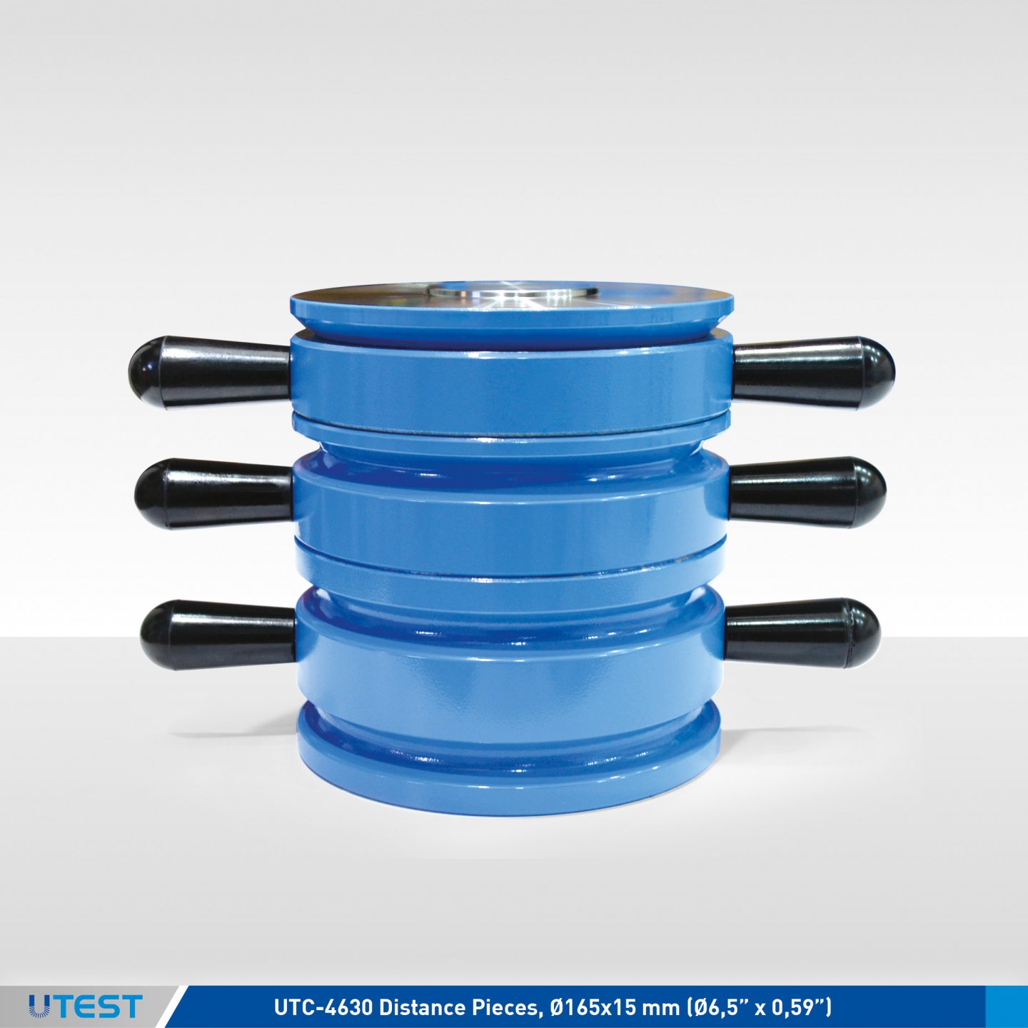 The machine is supplied complete with UTM-8516 (Ø:165 mm Lower and spherical seated upper loading platens), distance pieces (15mm - UTCM-4630, 30 mm - UTCM-4631, 50 mm - UTCM-4633 and 100 mm - UTCM-4634). Other suitable accessories should be ordered separately acc. to the test performed.