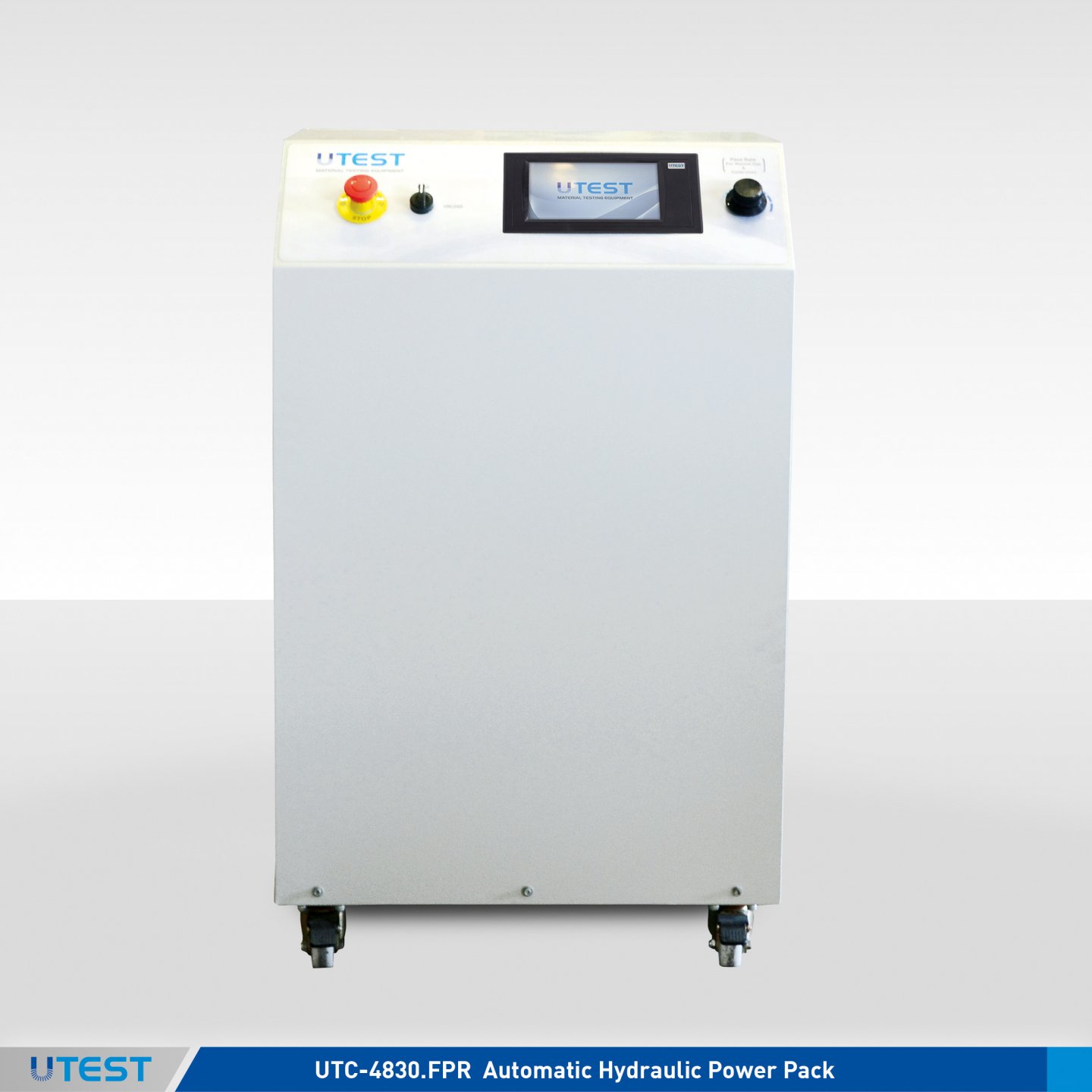 The UTC-4850 and UTC-4860 Automatic Power Packs with Proportional Valve and The UTC-4870 Automatic Power Packs with Servo Valve are advanced power packs can be used on any testing system ideal for R&D laboratories and Universities for advanced tests with P.I.D. Closed loop control. It can perform tests under load and displacement controls. The frequency of the P.I.D controller and data acquisition is 1000 Hz. UTC 4850 and 4860 Automatic power packs are designed to supply the required oil to the load frames for loading, unloading or low cycle dynamic testing. All the operations of Data Acquisition and Controls System can be controlled from the touch screen front panel of a 240x320 LCD display or computer.