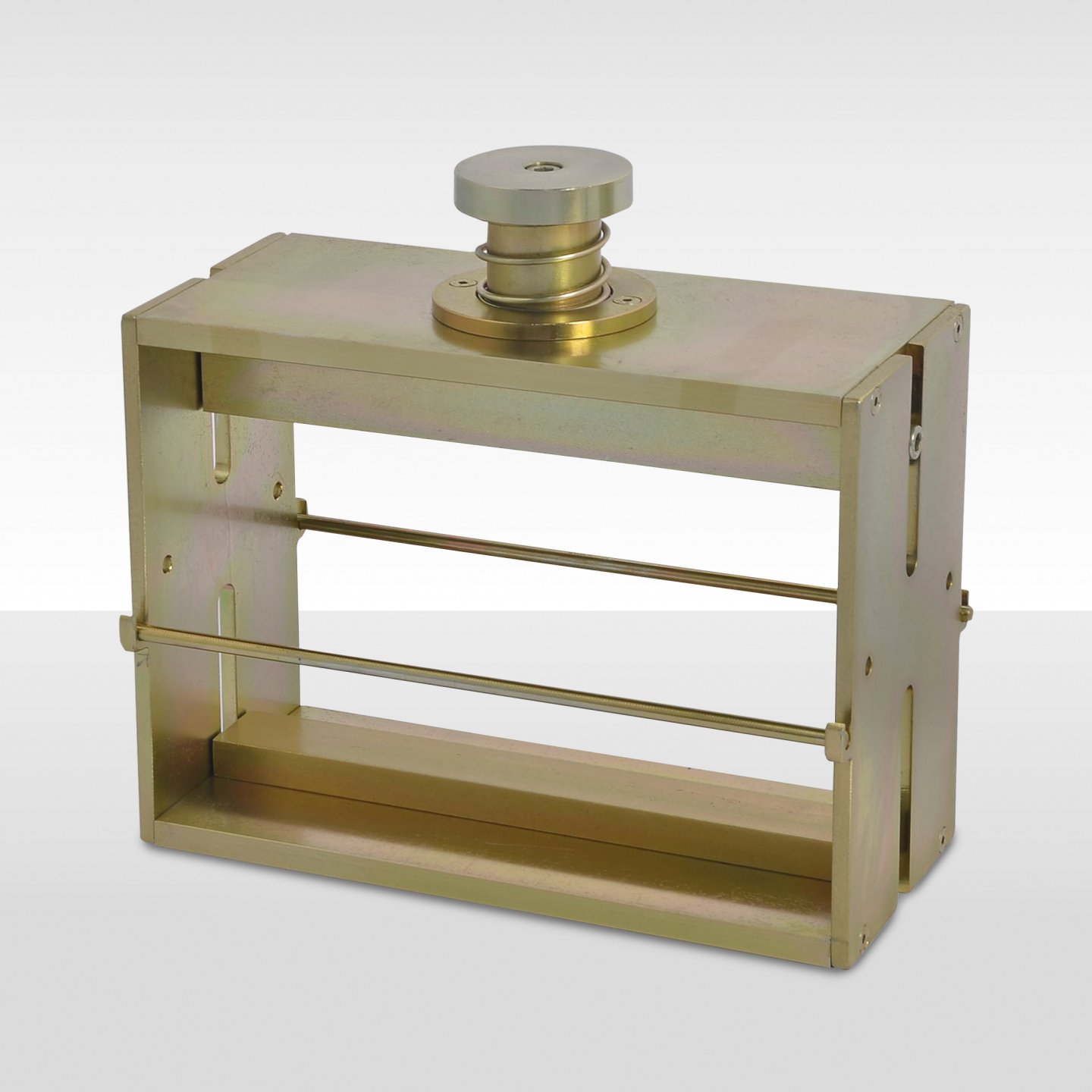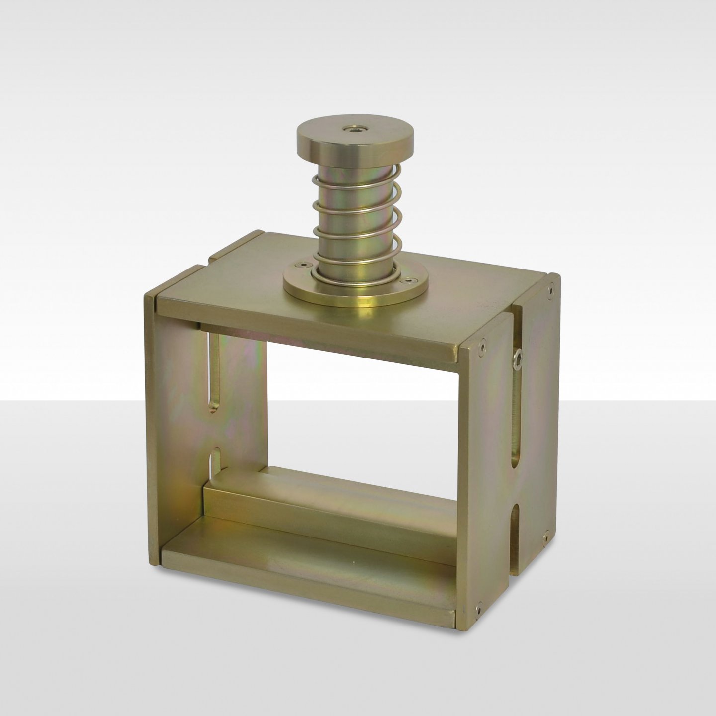Energy absorption capacity test equipment for fiber reinforced sprayed concrete slab specimens, EN 14488-5. Supplied with a rigit square supporting frame, a square loading block and connection attachments for UTGM-0078.One pcs. displacement transducer (UTGM-0078-50mm travel) should be ordered separately