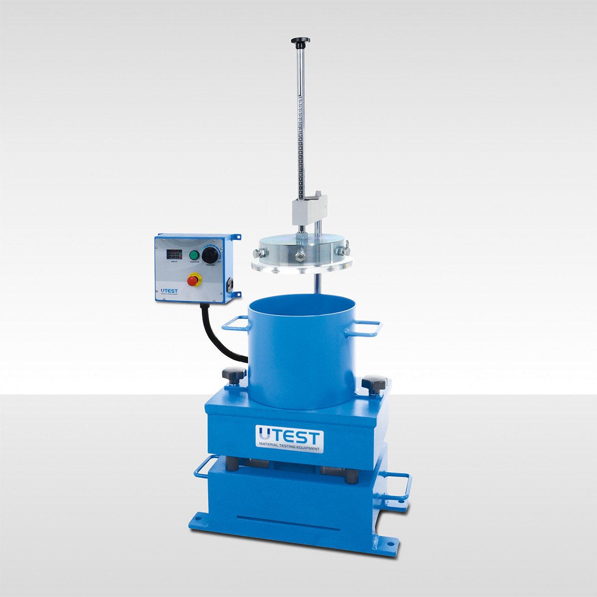 Energy absorption capacity test equipment for fiber reinforced sprayed concrete round specimens, ASTM. Consists of a support fixture with three pivots, a loading piston and connection attachments for UTGM-0078.One pcs. displacement transducer UTGM-0078 -50mm travel) should be ordered separately