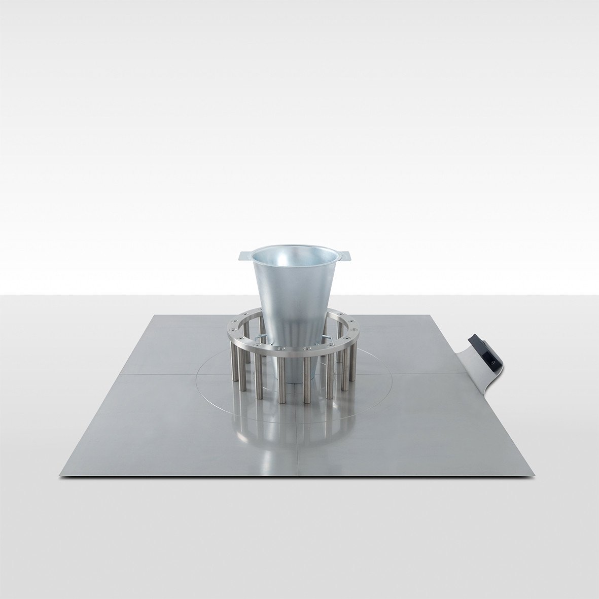 Square Sampling Form for energy absorption test of sprayed concrete. With Rigid Base and Handles. Steel EN