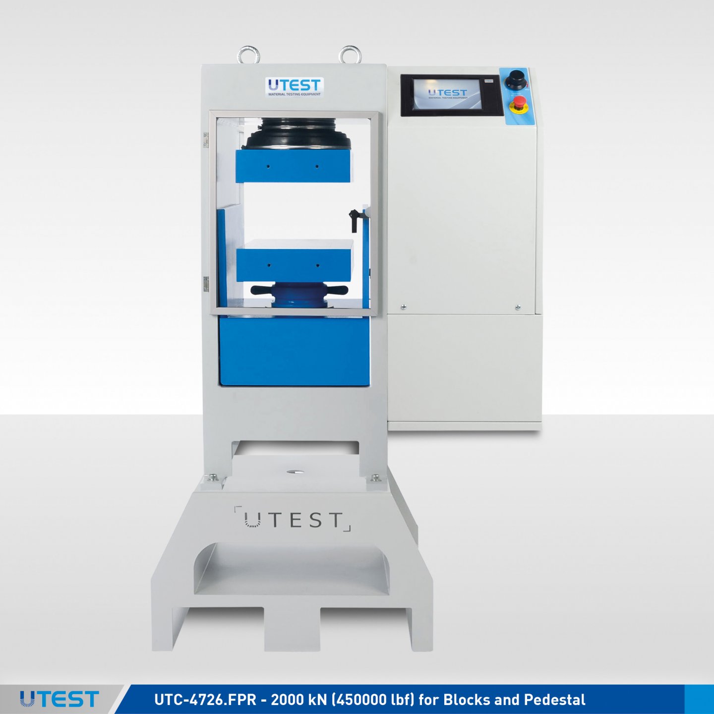 The main advantage of the UTEST advanced testing system is the modularity. The main item is the UTC-4850, UTC-4860 and UTC-4870 Advanced Servo Controlled Automatic Power Packs with proportional and servo valve. All UTEST compression, flexure or tensile testing frames can be connected to those power pack. Thus any test configuration can be designed to make wide range of applications including, Elastic modulus, Poisson ratio, fracture toughness, post peak residual strength, energy absorption, rock triaxial and also conventional failure tests.